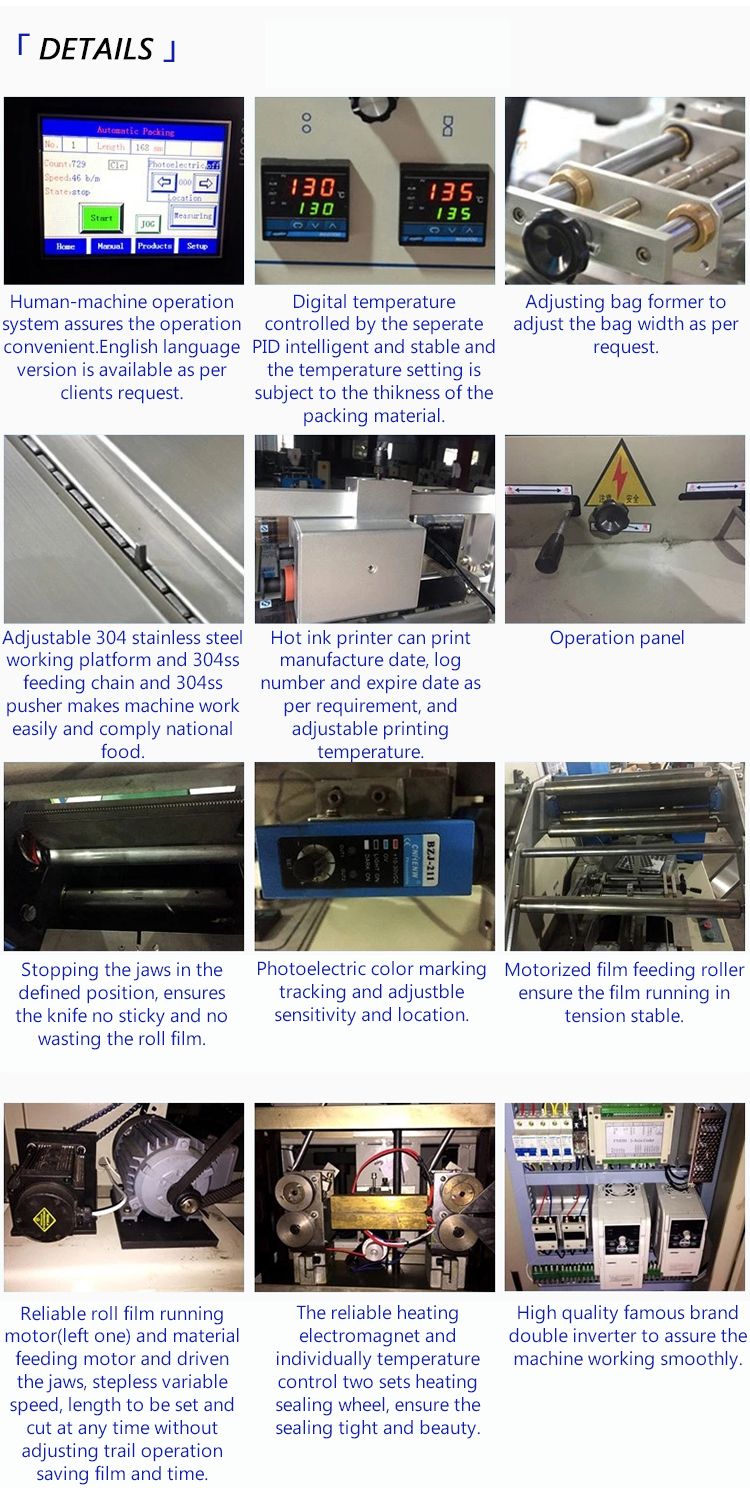 Wysoka automatyzacja: Automatyczne podawanie, wytwarzanie worków, napełnianie, uszczelnianie, cięcie i wydawanie są wykonywane automatycznie, co sprawia, że nadaje się do produkcji na dużą skalę.
