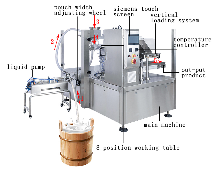 | Podkreślić | hydraulic drive liquid packaging machine,fully automatic beverage packaging equipment,eight-station food packing machine |